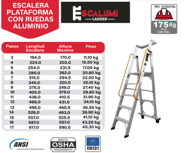 Inicio ESCALERAS DE ALUMINIO Escalera plataforma Escalera plataforma con ruedas – Aluminio