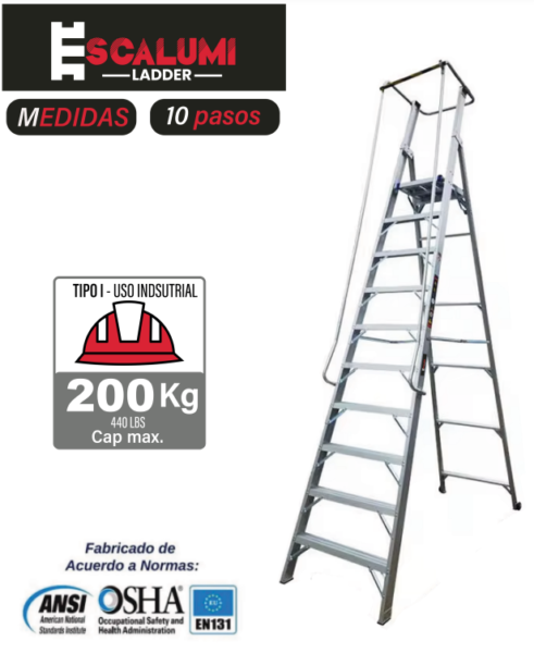 - Tipo de Escalera: Escalera Tipo Plataforma Plegable Aluminio