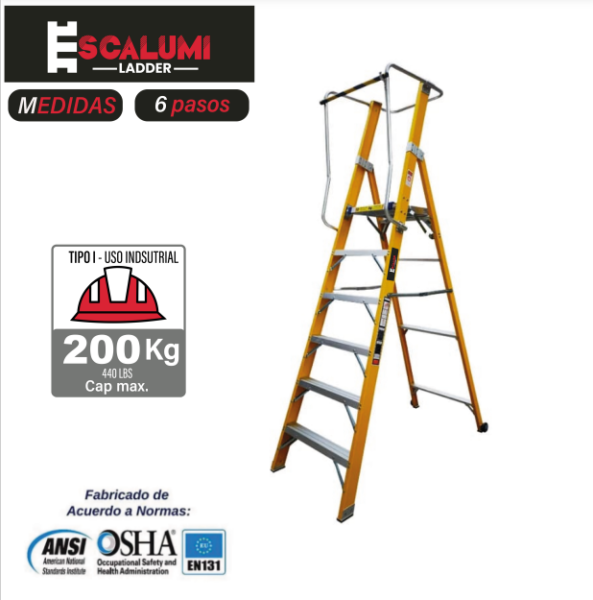 - Tipo de Escalera: Escalera Tipo Plataforma Plegable de Fibra de Vidrio