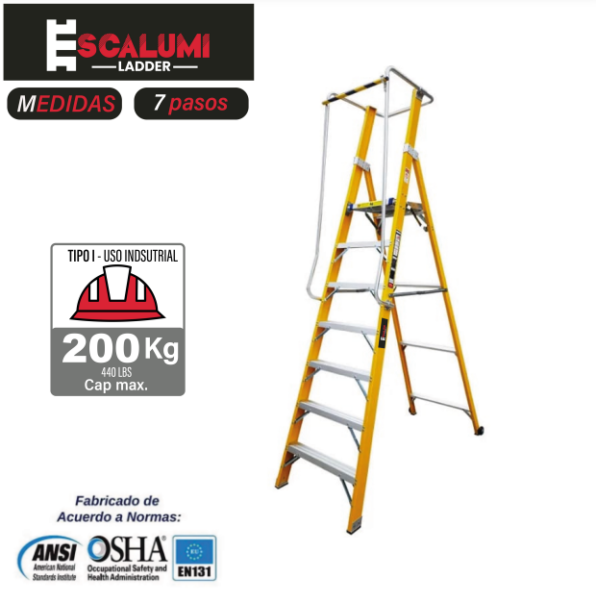 • Tipo de Escalera: Escalera Tipo Plataforma Plegable de Fibra de Vidrio